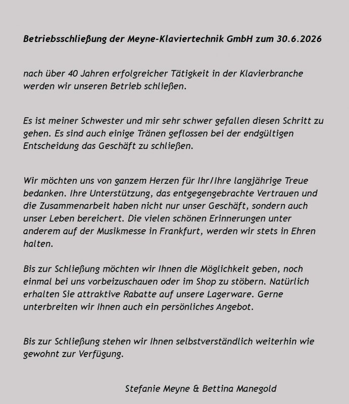 Als Privatkunde/nicht Gewerbetreibender im Klavierbau wechseln Sie bitte zu:
